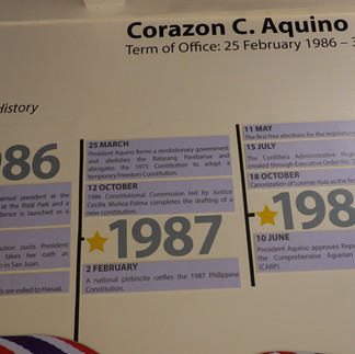 1986년 2월 25일, EDSA 거리를 노란색으로 물들었던 피플 파워 혁명(EDSA 혁명)은 평범한 주부였던 코라손 아키노(코리 아키노)를 필리핀 최초의 여성 대통령으로 제11대 대통령의 자리에 오르게 만들었다. 피플 파워의 힘이었다. '코리'라는 애칭으로 불리며 대다수 필리핀 국민의 지지를 받아 대통령 자리에 오른 코라손 아키노는 독재정권의 재발을 막기 위해 대통령 임기를 6년 단임제로 제한하도록 했다. 그리고 취임 이듬해 공화국법을 하나 발표했는데, 바로 마닐라 국제공항(Manila International Airport)의 명칭을 니노이 아키노 국제 공항(NAIA. Ninoy Aquino International Airport)으로 바꾸는 내용을 담고 있는 법이었다. 필리핀에서 가장 중요한 공항에 죽은 남편의 이름을 붙이는 것에 코라손 아키노가 어떤 감정을 느꼈을지는 모르지만, EDSA 거리가 노란색으로 물들던 그날처럼 뜨거운 감동을 받지 않았을까 싶다.
