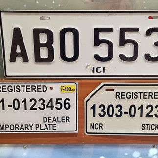 임시번호판 가격은 재질이 아크릴(Decal plate)이냐 아니면 메탈(Metal plate)이냐에 따라 달라지는데, 아크릴도 두께에 따라 제작 비용이 달라진다. 메탈은 아크릴보다 두 배가량 더 비싼데, 메가몰이나 아얄라몰 등과 같은 대형 쇼핑몰 내의 샵에서 메탈 재질로 차량용 임시번호판을 만들려면 1,100페소~1,300페소는 주어야만 한다. 가장 저렴하게 임시번호판을 만드는 방법은 동네에 있는 로컬샵에서 아크릴로 만드는 것인데, 가게마다 가격은 다르지만 대략 200페소에서 400페소 사이를 생각하면 된다.